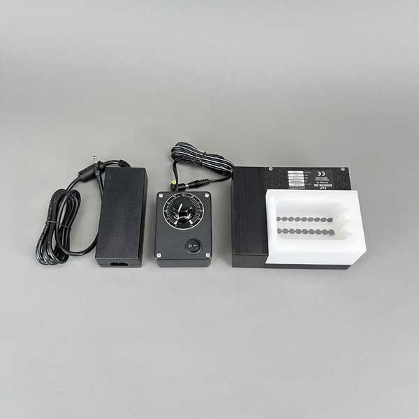 The Magnetic Stainless Steel Bubble Paddles in the Reservoirs are magnetically coupled and spun by a powerful drive magnet in a VP 710C Series Tumble Stirrer. This combination is able to keep even magnetic beads, resins, SPA beads, glass beads, other particulates, and cells in uniform suspension while they are being pipetted to microplate wells.