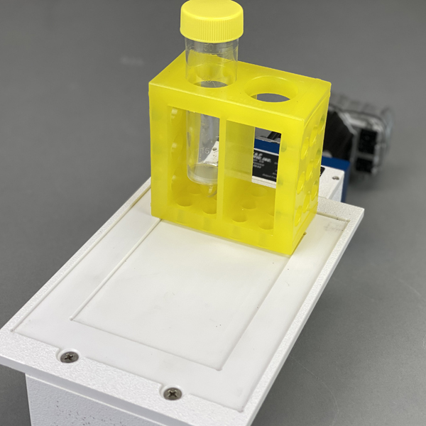 Using a patent-pending design to mix with an oscillating motor base. No stir bar, or internal moving parts.
