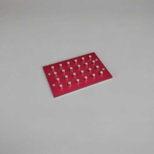 Although the slots in the pin are a precise volume, the liquid that is transferred is usually more. The reason for this is due to the surface tension of the liquid causing the liquid in the slot to “bow out” thus increasing the volume of the liquid in the slot. If is important for you to transfer exactly a certain volume we can make custom slots to match the surface tension characteristics of your liquid