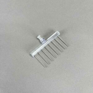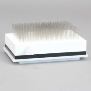 Although the slots in the pin are a precise volume, the liquid that is transferred is usually more. The reason for this is due to the surface tension of the liquid causing the liquid in the slot to “bow out” thus increasing the volume of the liquid in the slot. If is important for you to transfer exactly a certain volume we can make custom slots to match the surface tension characteristics of your liquid