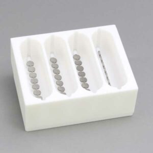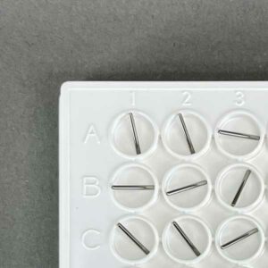 Although the slots in the pin are a precise volume, the liquid that is transferred is usually more. The reason for this is due to the surface tension of the liquid causing the liquid in the slot to “bow out” thus increasing the volume of the liquid in the slot. If is important for you to transfer exactly a certain volume we can make custom slots to match the surface tension characteristics of your liquid