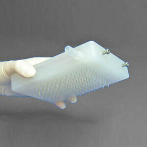 Although the slots in the pin are a precise volume, the liquid that is transferred is usually more. The reason for this is due to the surface tension of the liquid causing the liquid in the slot to “bow out” thus increasing the volume of the liquid in the slot. If is important for you to transfer exactly a certain volume we can make custom slots to match the surface tension characteristics of your liquid