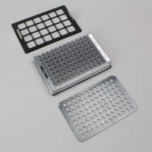 SLAS DECK ADAPTOR, Gray PVC, 12.5mm Overall Height, SLAS Microplate Pocket (128mm Length, 85.6mm Width ) on the Top (130.25mm Length, 87.85mm Width Outer Dimensions), Off-Set to one Corner (2.25mm in X and 2.25mm in Y), SLAS Footprint (127.7 Length, 85.4mm Width, 7.5 mm Height)