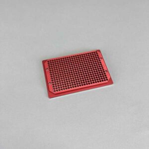 MAGNETIC BEAD SEPARATION PLATE, 384 Well, PCR Plate, V-Bottom, 96 Round Posts, 52MGO, NdFeB Magnets, Red Anodized Aluminum Magnet Frame, 1 Sided Pellet Location, Low Pellet Position, 3.1mm Post Diameter, Axial – North Poles Up Magnetic Orientation, SLAS Footprint, No Registration Base